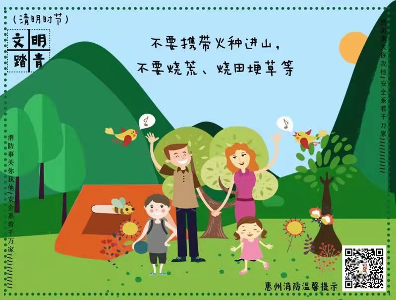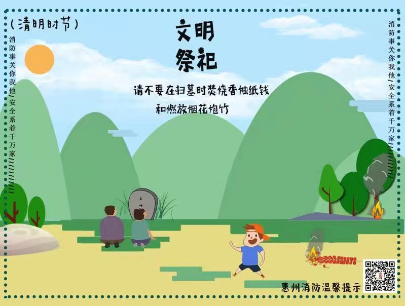 清明祭扫莫忘安全。以往清明祭扫期间也是交通事故和森林火灾的多发期,对此,我们必须保持清醒认识和严格戒备,在祭祀故人时切勿忘了把安全放在首位,自觉维护祭扫场所的公共秩序,严格遵守交通出行规则和有关防火规定,不随意停靠车辆,不携带火种和易燃易爆物品进入祭扫场所,自觉遵守疫情防控要求,尽量减少人员聚集,严防各类安全事故的发生。
