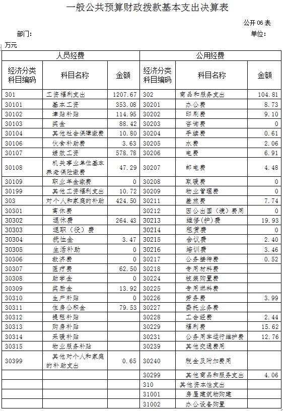 九、基本支出:指为保障机构正常运转、完成日常工作任务面发生的人员支出和公用支出。