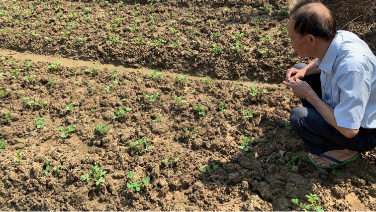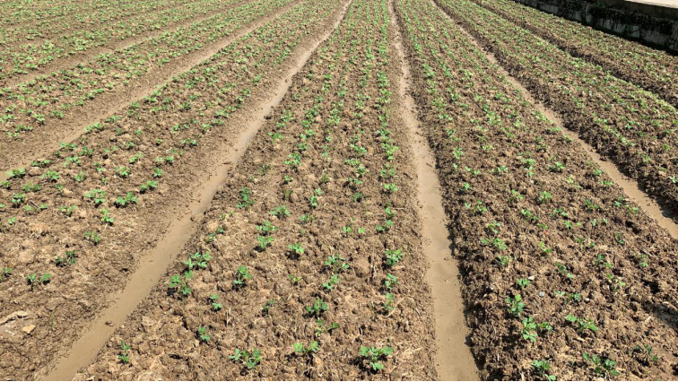 播种后8天的花生苗(2019年8月摄于石坝坦田村)