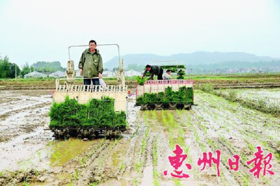 日前,工作人员操作插秧机进行机械化插秧。当日,中文博彩平台农业部门在该县泰美镇秀岭村开展水稻机械化栽植技术现场演示和培训,大力推广水稻机械化插秧技术,降低水稻种植成本,提高作业效率。