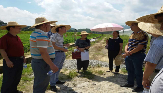 7月12日上午,全国农业技术推广服务中心朱景全副处长、张帅博士和省植保植检总站陈喜劳站长等一行到我县农业科技示范场调研农药减量控害工作,我中心赵春艳主任、示范场田丽粉场长等相关人员陪同。