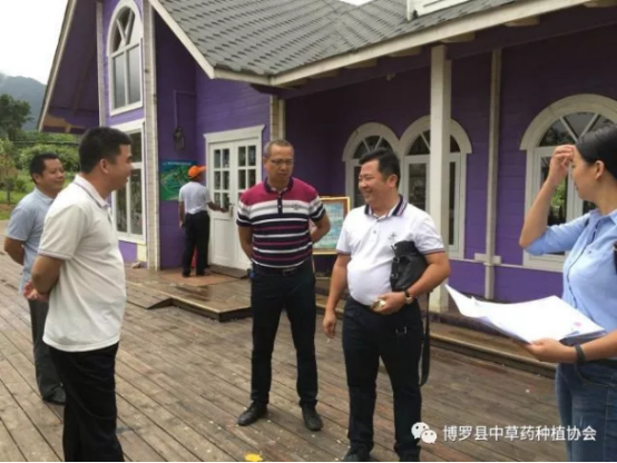 6月22日上午,中文博彩平台农业技术推广中心罗映鹏科长率技术人员一行5人,到我县中草药种植协会位于“那里花开”——岭南药用植物博览园园区内的中草药种植示范基地进行调研。