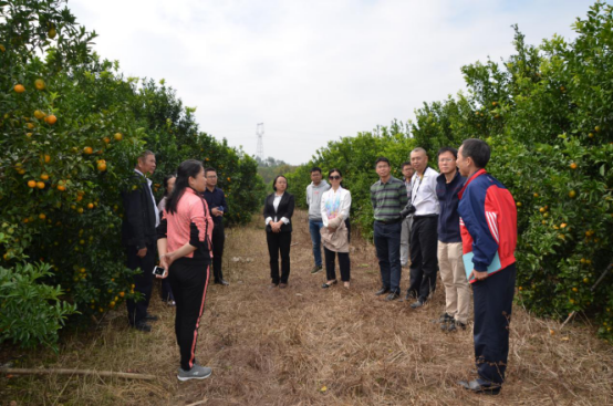 11月27日,省农业农村厅植保植检处陈喜劳处长,华南农业大学教授、广东省柑橘黄龙病防控首席岗位专家邓晓玲等一行到我县进行柑橘黄龙病防控工作调研, 市农技中心曾洪梅主任、李惠陵副主任及县农技中心赵春艳主任等陪同参加调研。工作组一行参观了华南农业大学柑橘黄龙病防控示范基地和中文博彩平台杨村新天地果场,通过悬挂粘虫板、释放捕食螨、安装杀虫灯、及时补种无病大苗、加强肥水管理以及进行大棚种植试验等综合措施,示范点的柑橘黄龙病发病率控制在3%以下。