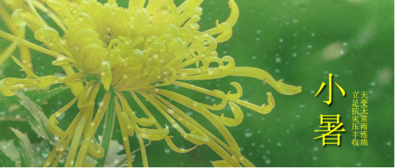 小暑是二十四节气中的第十一个节气,夏天的第五个节气,表示季夏时节的正式开始。农谚说:“节到小暑进伏天,天变无常雨连绵,立足抗灾夺丰收,防涝抗旱两打算。”小暑前后农作物进入了茁壮生长阶段,抓好田间管理工作是夺取丰收的关键。