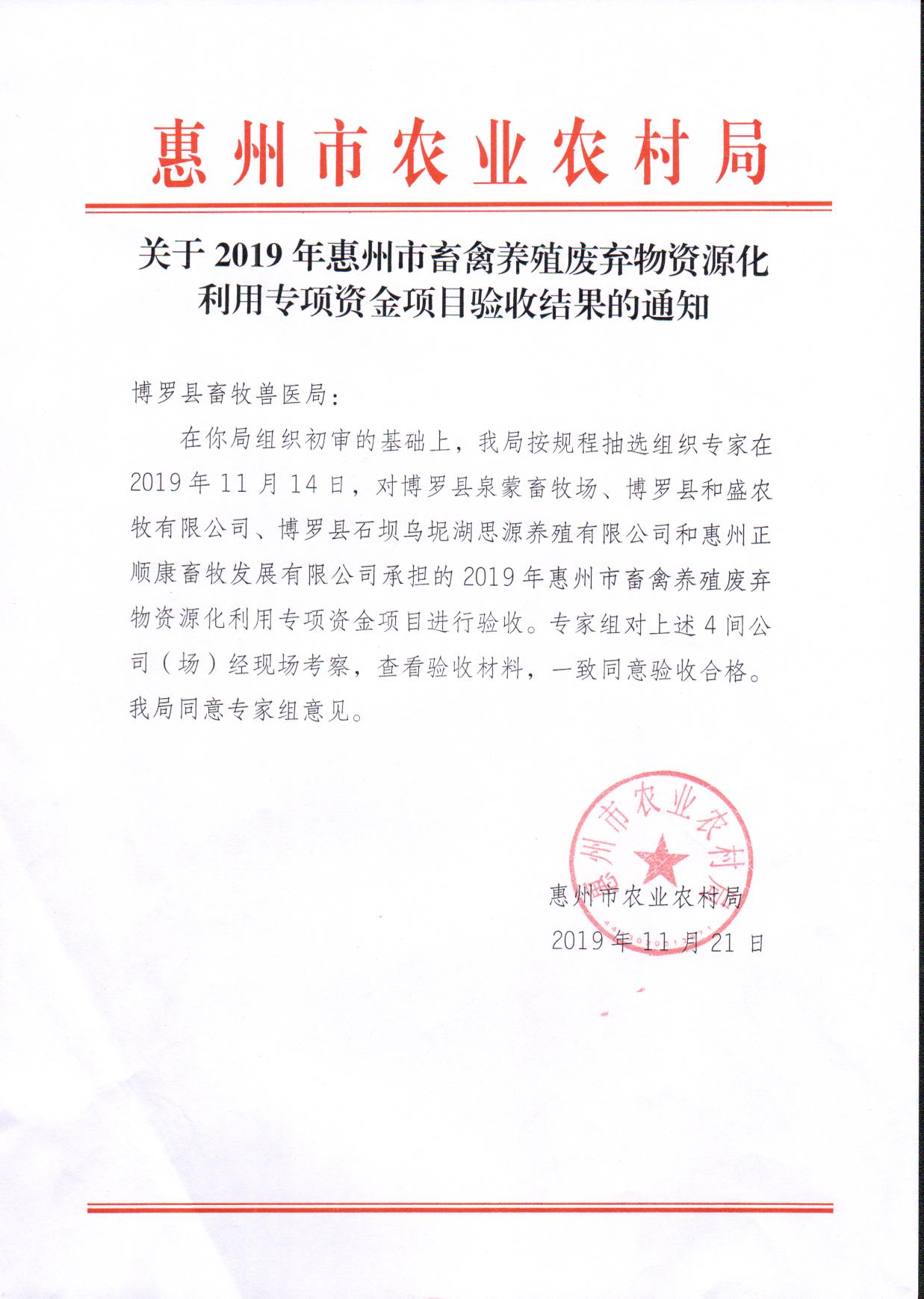 关于2019年惠州市畜禽养殖废弃物资源化利用专项资金项目验收结果的通知