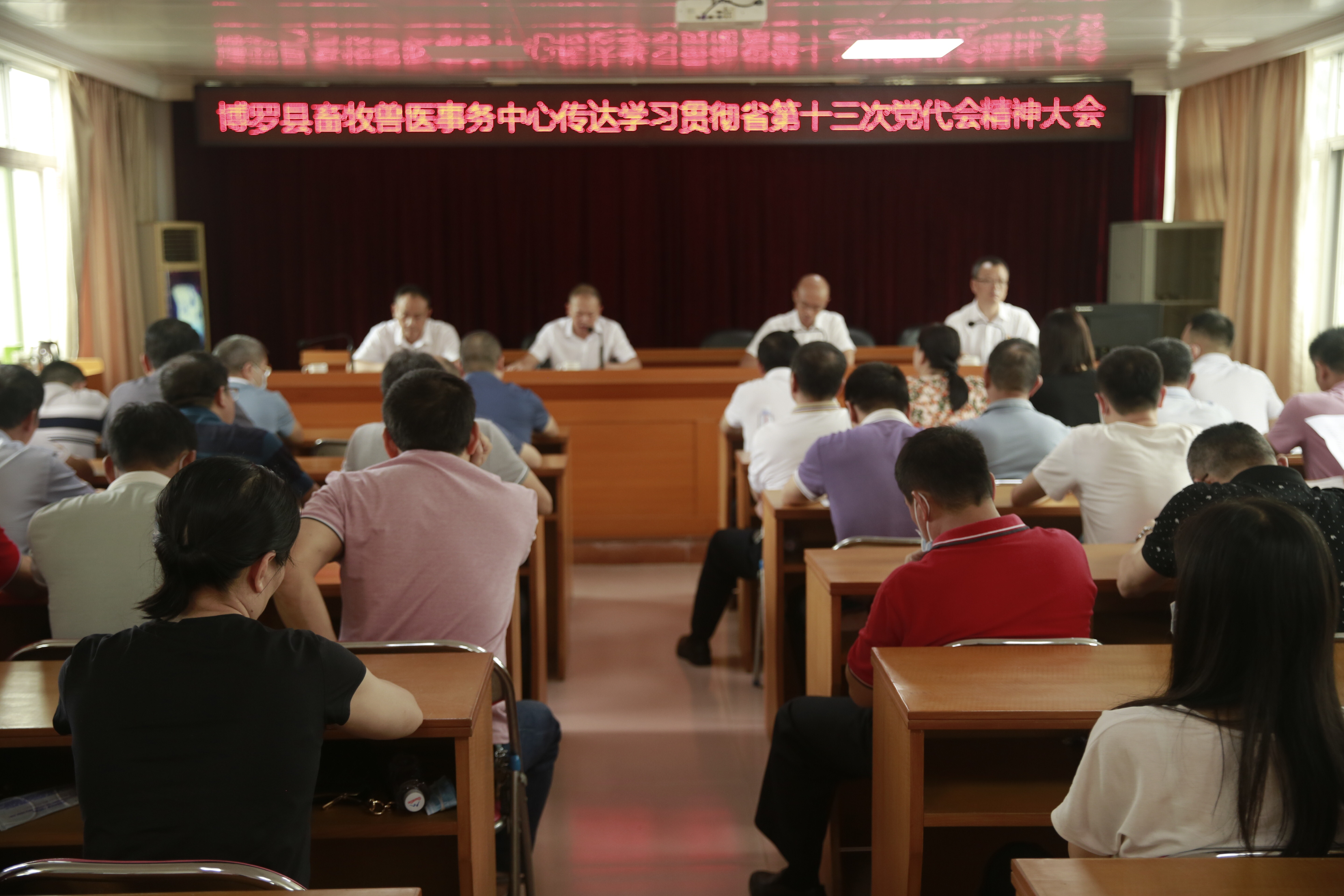 2022年6月13日,县畜牧兽医事务中心召开大会,传达学习贯彻省第十三次党代会精神。