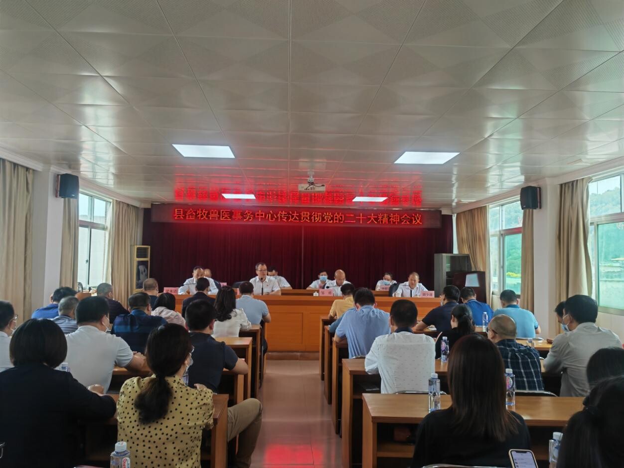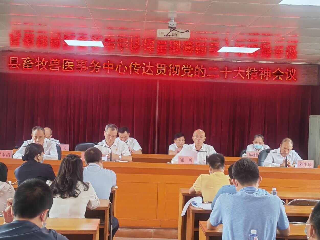 2022年11月1日,县畜牧兽医事务中心召开大会,传达学习贯彻党的二十大精神。会议由中心副主任苏东祥主持。