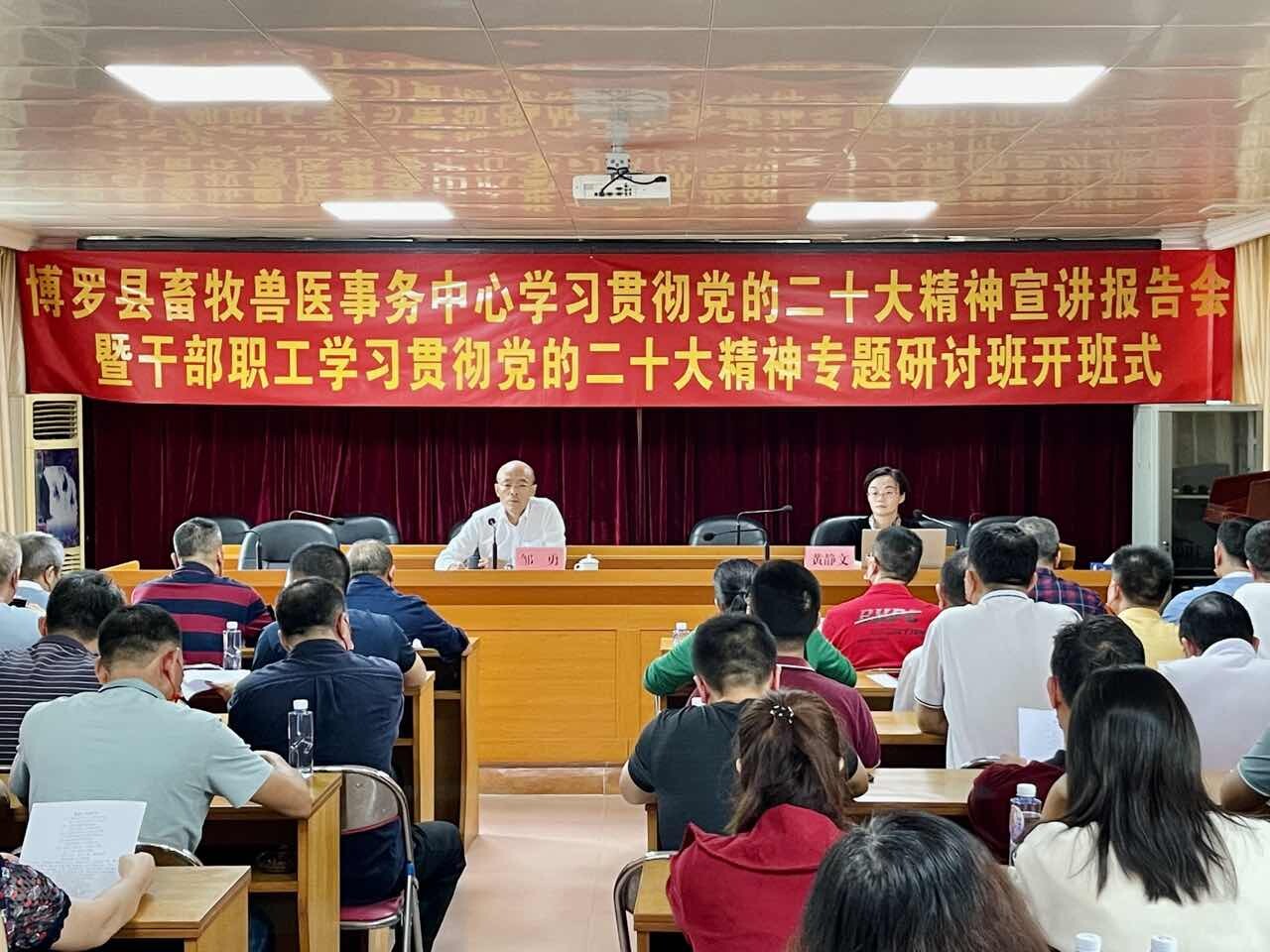 为深入学习宣传贯彻党的二十大精神,2022年11月22日,中文博彩平台畜牧兽医事务中心举行了学习贯彻党的二十大宣讲报告会暨专题研讨班开班式。