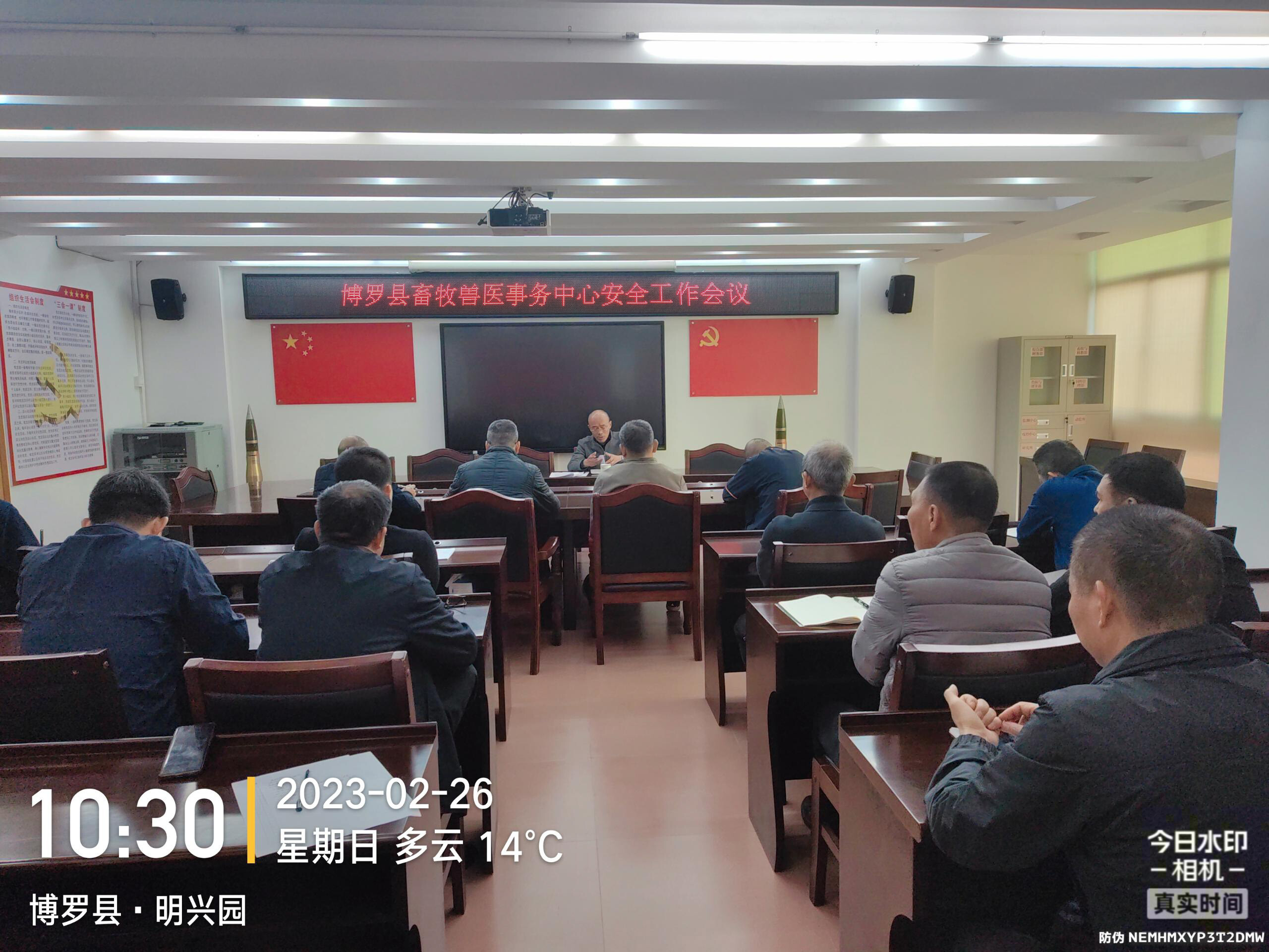 2023年2月26日上午9点30,中文博彩平台畜牧兽医事务中心组织副股以上干部召开了中心安全工作会议。会议通报了2月8日武深高速官山路段交通亡人事故和2月21日石湾镇新怡豪门住宅小区清理化粪池亡人事故,中心主任邹勇传达了县委县政府安全工作会议精神,强调安全工作是保底的工作,要做到“四个认真”(即文件要认真研究,工作要认真部署,检查要认真落实,隐患要认真排查),杜绝出现“包而不管、管而不实、实而不久、久而放之”的现象。