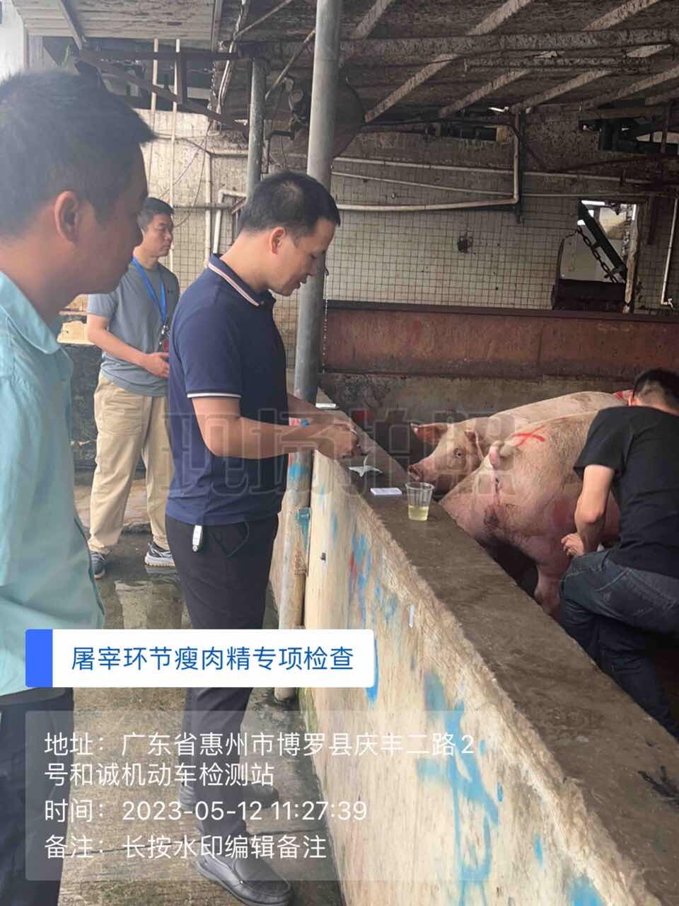 本次专项检查以生猪、肉牛屠宰企业为重点,通过查看台账资料、检查屠宰设施环境、询问企业负责人等方式,检查屠宰管理、档案记录、进场检查登记、肉品品质检验、“瘦肉精”自检等制度落实情况。同时,对待宰牲畜随机采集尿液现场进行“瘦肉精”监测,结果均为阴性。