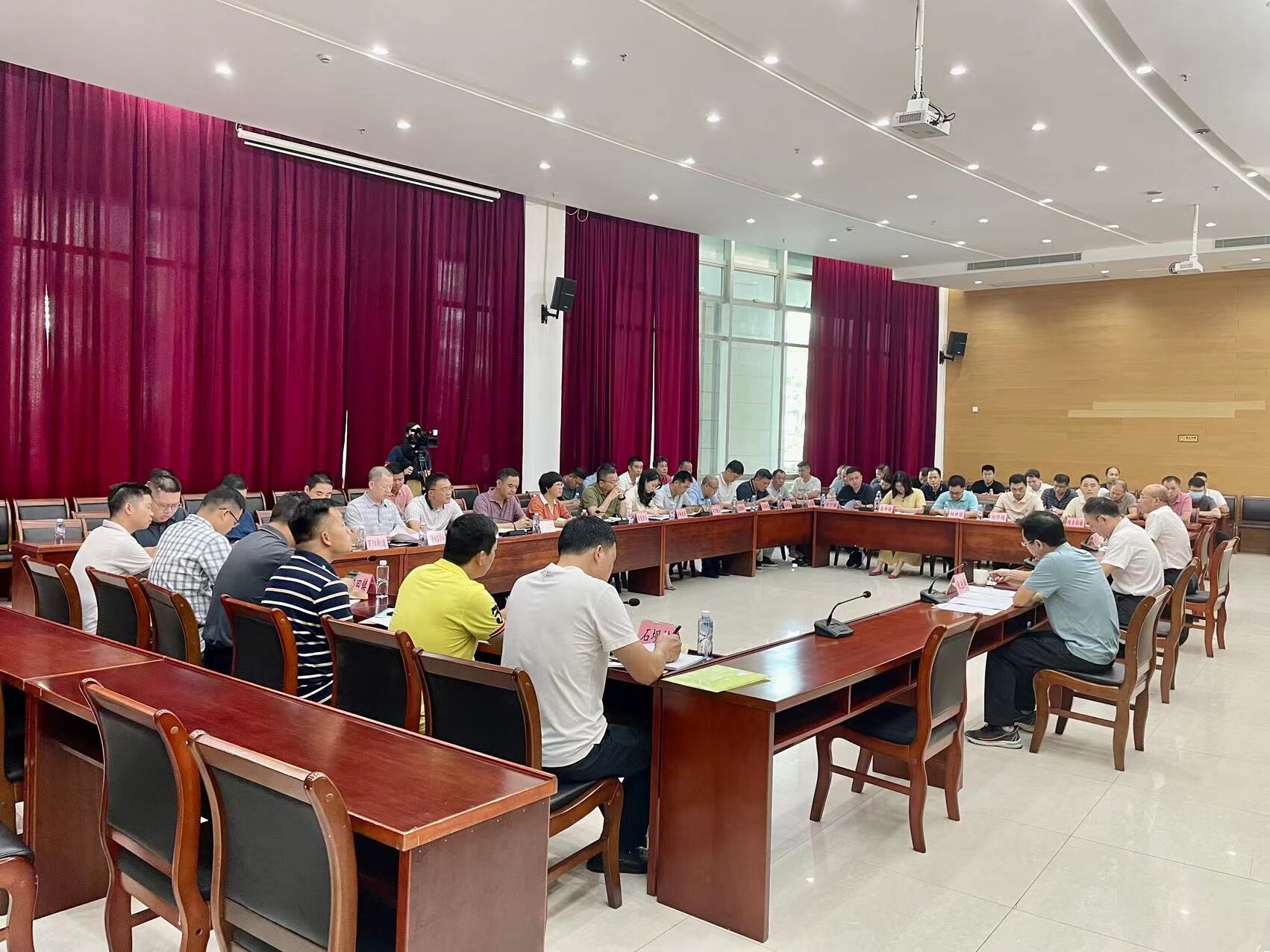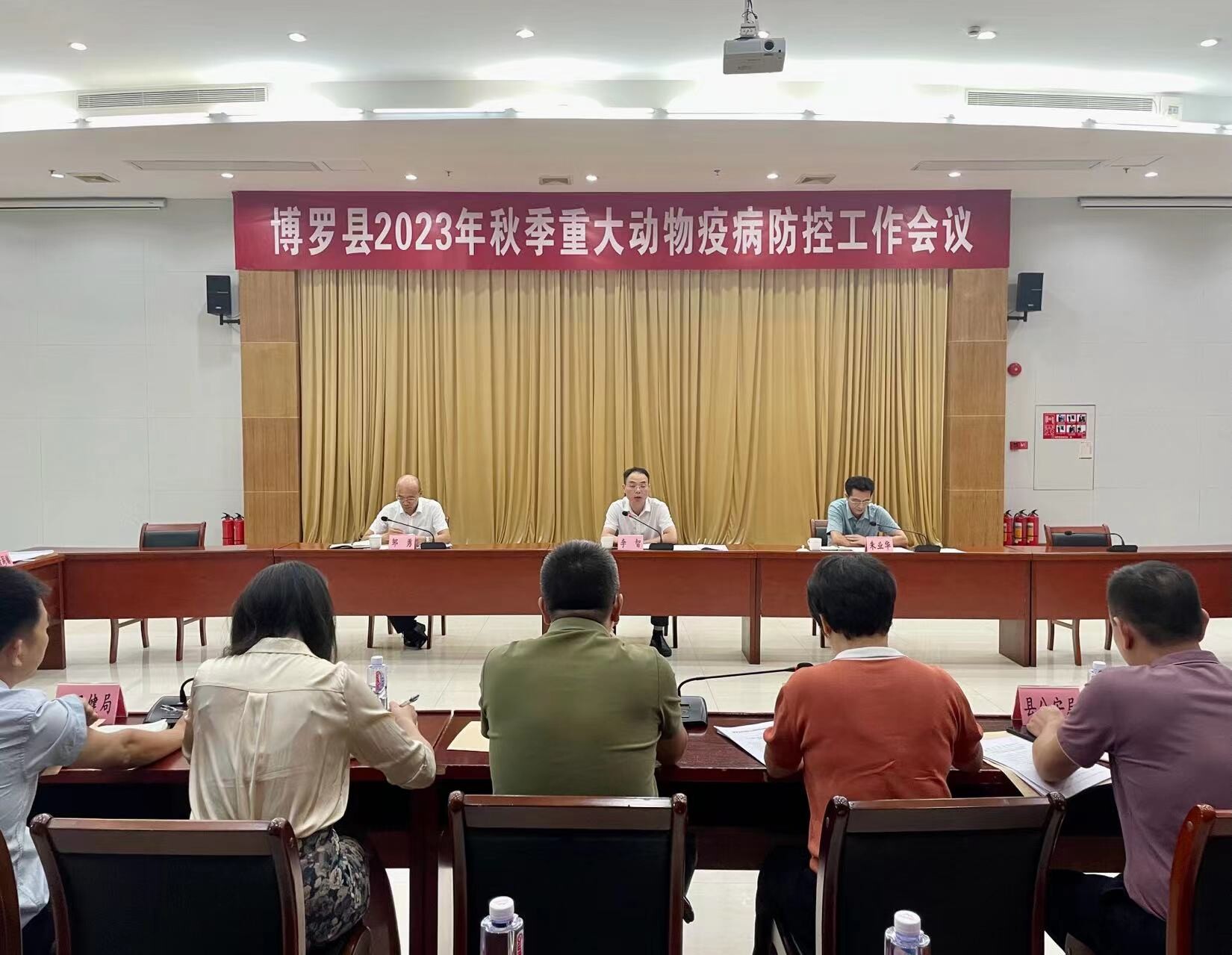 2023年9月20日下午,中文博彩平台2023年度秋季重大动物疫病防控工作会议在县文化活动中心召开,副县长李智、县政府办副主任朱业华、县畜牧兽医事务中心主任邹勇,各镇政府(街道)畜牧兽医分管领导和相关负责人,县防制重大疫病指挥部成员单位分管领导等50人参加会议,会议由县政府办副主任朱业华主持。