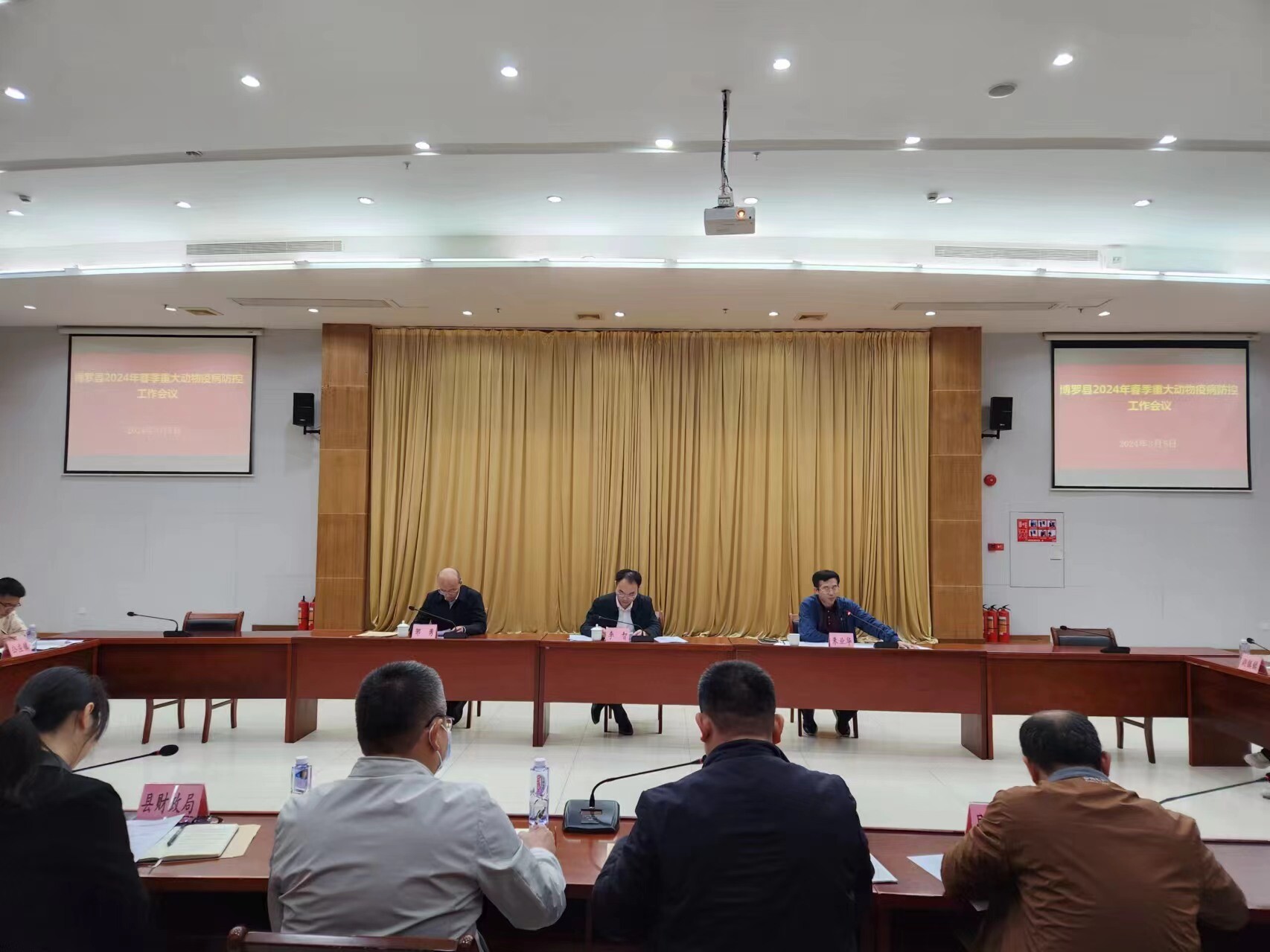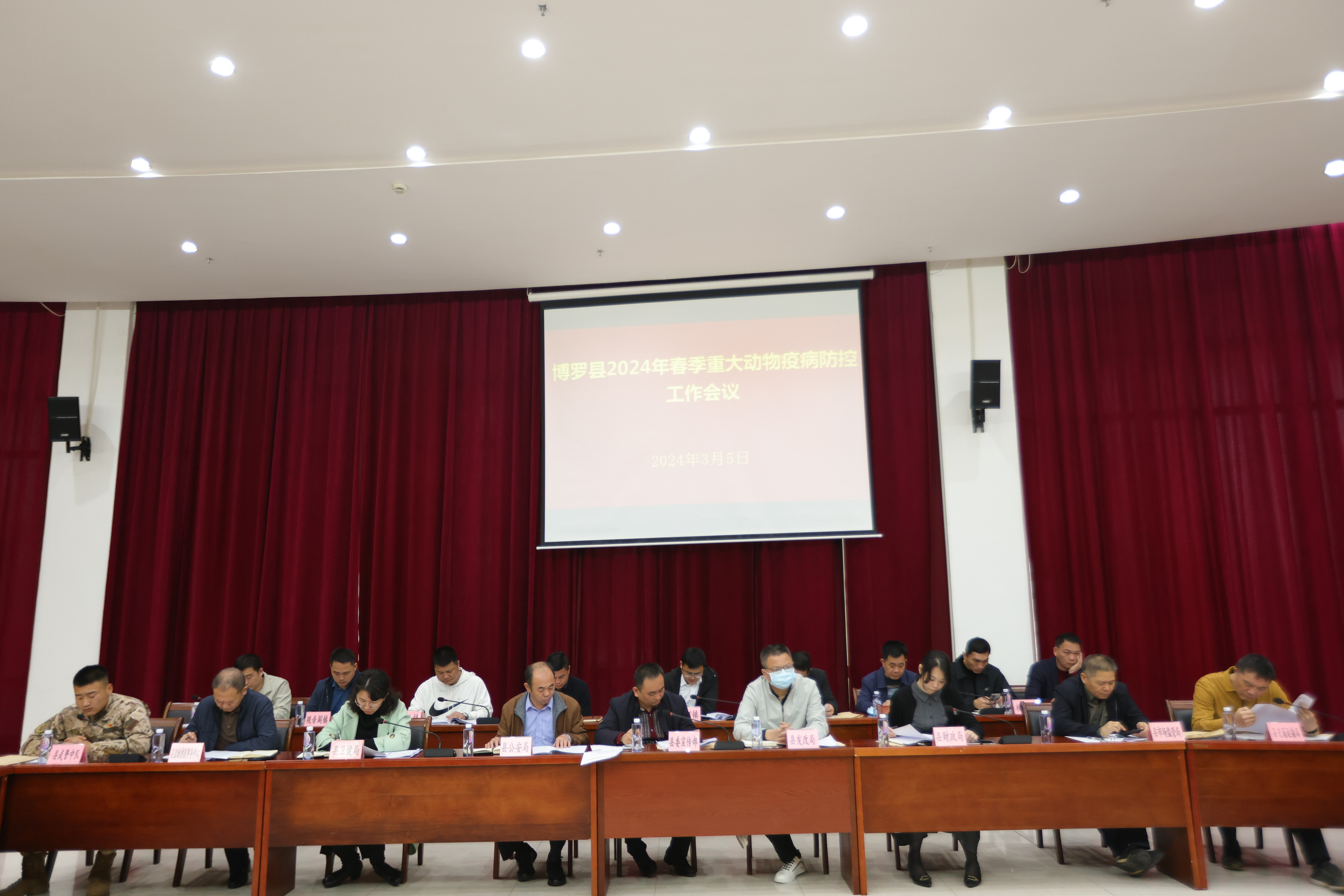 2024年3月5日,中文博彩平台召开2024年春季重大动物疫病防控工作会议,李智副县长、县政府办副主任朱业华、各镇政府(街道)分管畜牧兽医的领导和畜牧兽医站负责人、县畜牧兽医事务中心等县防制重大疫病指挥部成员单位分管领导共50人参加会议,会议由朱业华副主任主持。