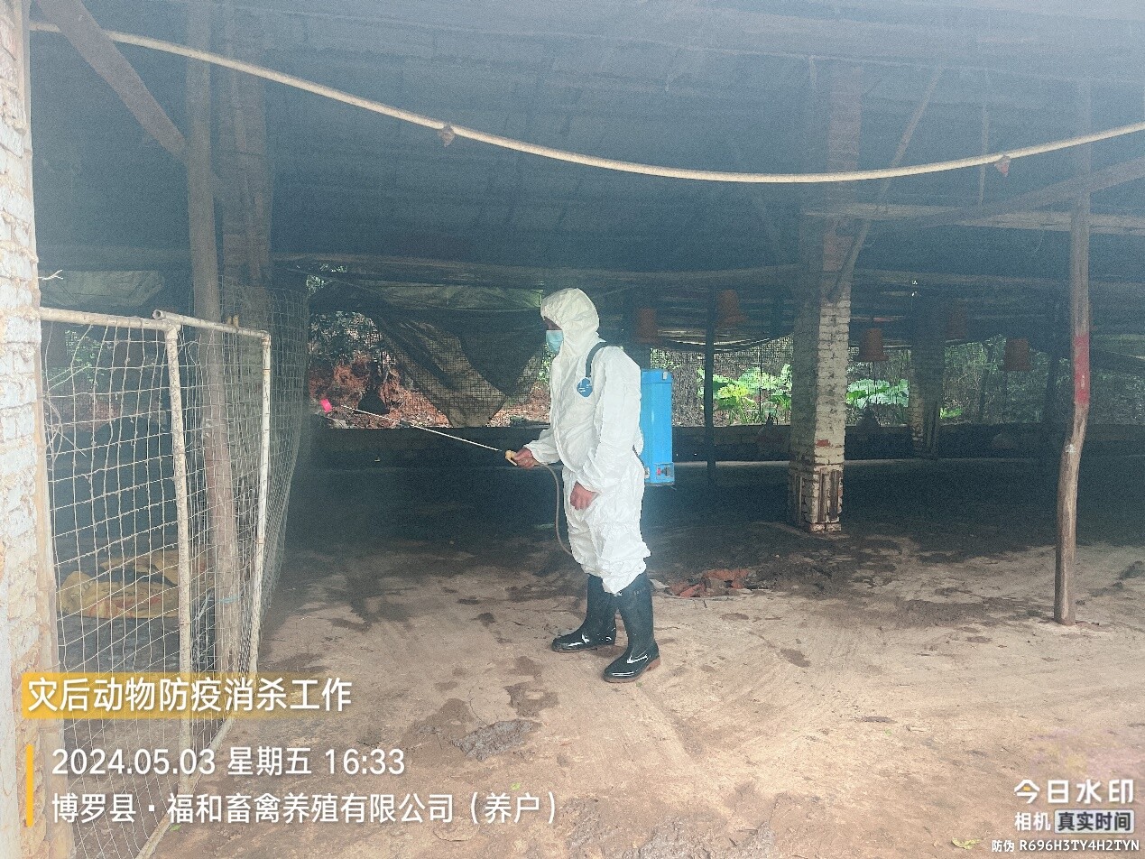 为做好灾后复工复产工作,消除动物疫情风险隐患,维护我县畜牧业生产安全和公共卫生安全,县畜牧兽医事务中心全力以赴,积极应对,确保大灾之后无大疫。一是强化组织领导。我中心制定下发《关于加强汛期动物疫病防控工作的通知》,成立灾后动物疫病防控工作领导小组,中心领导带队到泰美、杨村、麻陂、石坝等地指导灾后畜牧业安全生产和疫病防控工作,协调保险机构做好理赔,理赔金额约74.6万元,助力养殖场户恢复生产信心。二是做好病死畜禽无害化处理。督促各镇街切实落实属地管理责任和养殖场主体责任,加大对辖区内河流、道路沿线、养殖场周边等重点区域的巡查,及时收集因灾死亡畜禽,共无害化处理畜禽2.69万羽(头)。三是做好消毒灭原。我中心组织受灾养殖场户及时清理淤泥、粪便、过水饲料、垫料等,并紧急下拨消毒药2吨,指导做好消毒灭原工作,消杀面积达40万平方米,防止病原滋生与传播。四是做好灾后技术指导。我中心组织技术人员指导受灾养殖场户做好饲养管理、无害化处理、清洗消毒、免疫接种和生物安全等工作,共出动人员21人次,指导养殖场户16家次,发放《汛期动物防疫“十要十不要”》等宣传资料50余份。五是做好疫情排查和补免。组织各镇街畜牧兽医部门和村级防疫员,加大对全县畜禽养殖场户的排查力度,发现疑似重大动物疫情的,及时科学规范处置。同时结合“春防”工作,对抗体水平不合格、超过保护期和新补栏的畜禽进行补免。