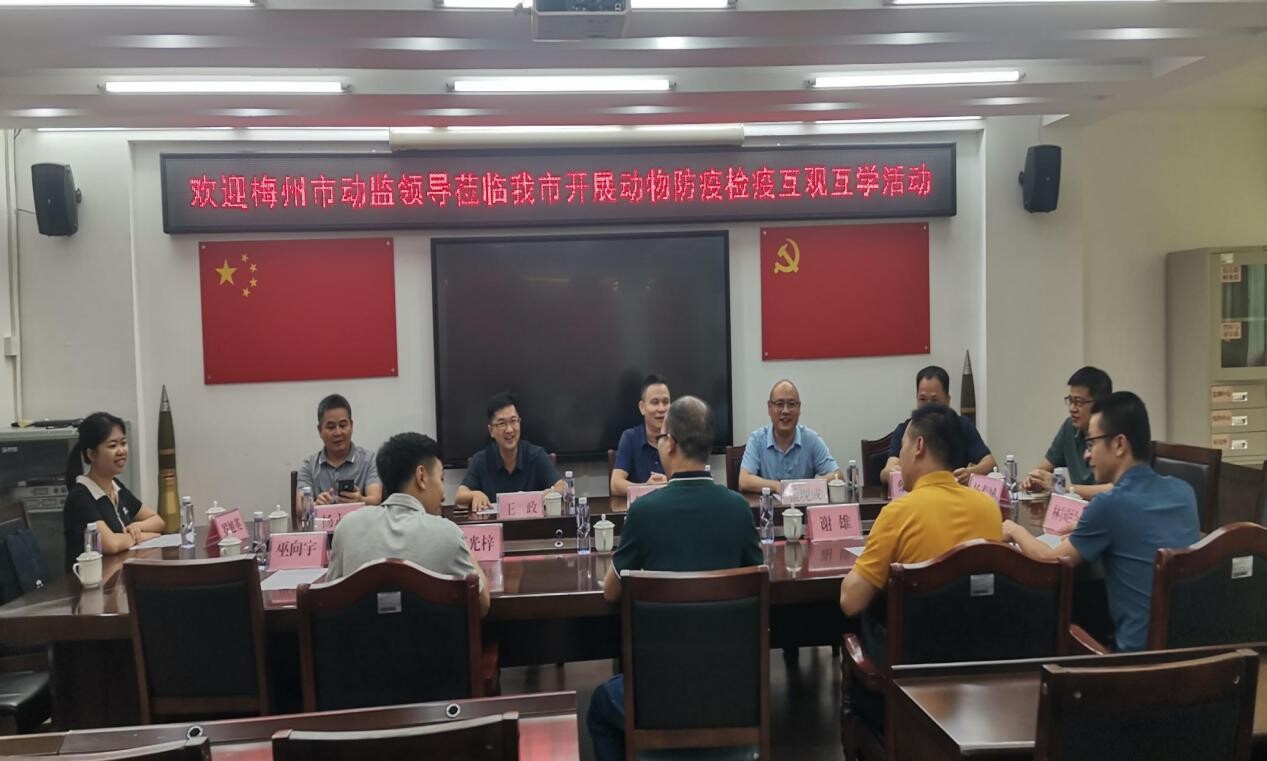 动物防疫检疫工作事关畜牧业高质量发展,事关动物源性食品安全和公共卫生安全。根据省动物疫控中心《2024年全省动物防疫检疫互观互学活动实施方案》要求,近日,梅州市动物卫生监督所韩文彩副所长带领学习小组一行5人对我县重大动物疫病防控、体系能力建设、动物检疫申报点建设、动物及动物产品检疫实施等工作开展互观互学活动。
