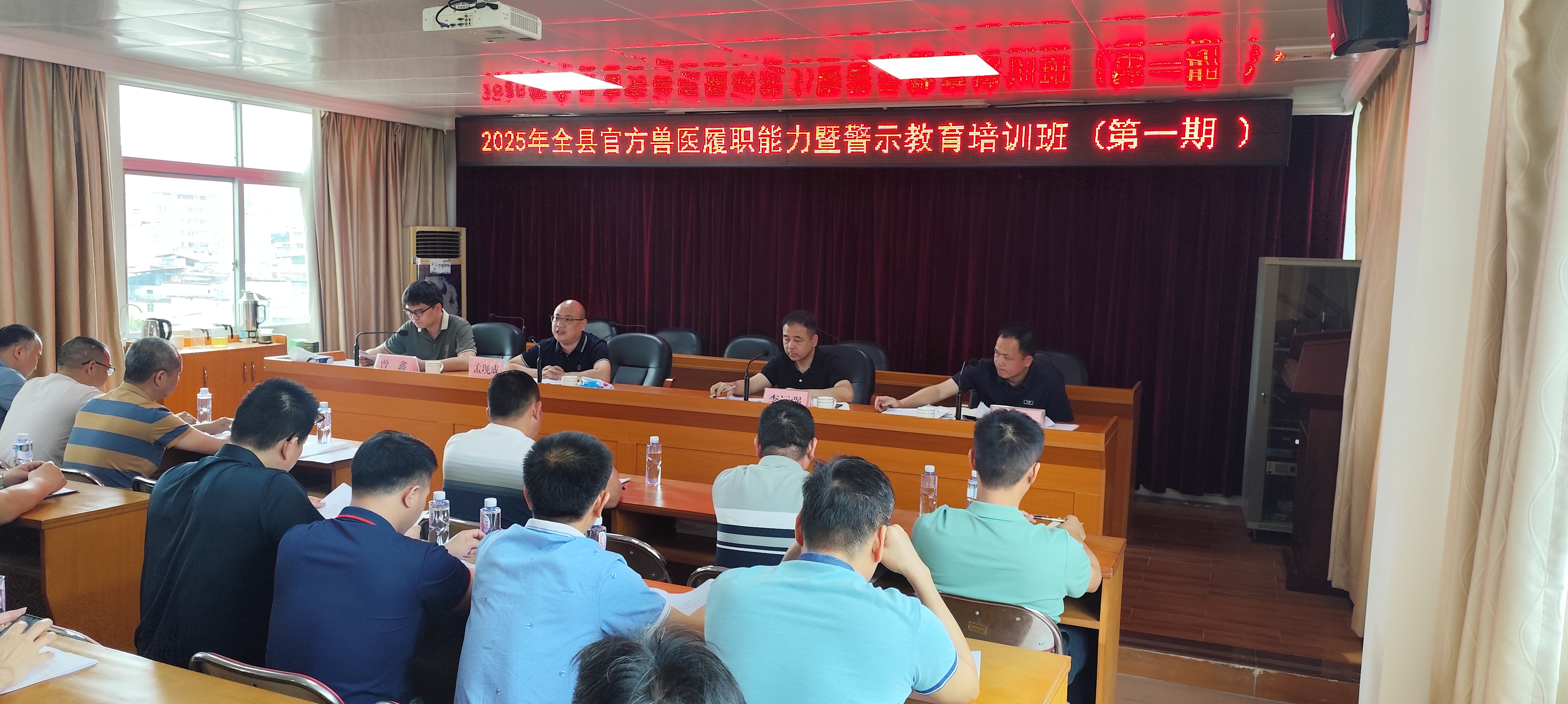 为深入贯彻《中华人民共和国动物防疫法》《动物检疫管理办法》等法律法规,严格生猪检疫监管,规范官方兽医履职行为,严明工作纪律,保障生猪产品质量安全,按照生猪检疫突出问题专项整治工作要求,近日,县畜牧兽医事务中心联合县农业农村局精心组织、统筹安排,成功举办2025年全县官方兽医履职能力暨警示教育培训班(第一期),共有60余名官方兽医参训。培训班分两期举行,确保全县103名官方兽医全覆盖。