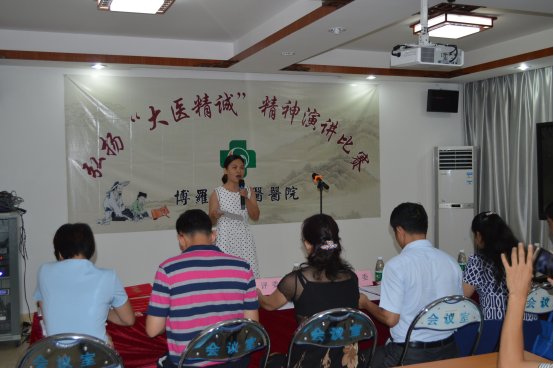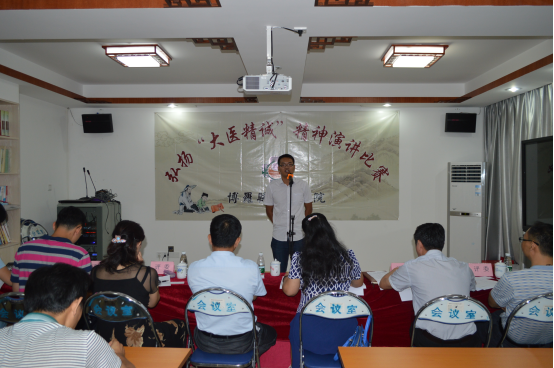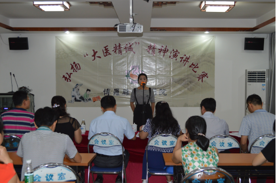 为弘扬“大医精诚”精神,进一步提高医疗服务能力和水平,打造中医药文化氛围,深入贯彻实施广东省中医药强省战略,我院于7月28日下午举行了弘扬“大医精诚”精神为主题的演讲比赛。同时邀请了县卫计局领导、医院领导、各科室负责人及部分医护人员到场观看了比赛。