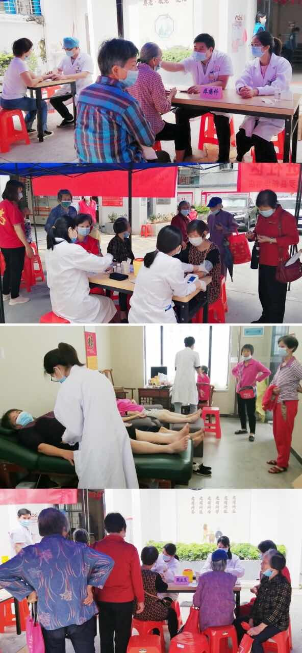 活动现场,为做好疫情防控工作,社工、志愿者、义工在现场维持秩序,引导前来咨询就诊的群众有序进场和等候,并测量体温、查看粤康码、行程卡、派发宣传资料等,医护人员为居民测量血压、血糖,同时给居民讲解高血压、糖尿病、中风、腰腿痛、关节炎等老年常见病多发病的预防及健康宣教。在一对一诊疗过程中,专家根据居民的症状情况、日常活动情况以及舌苔图像等提供健康咨询和建议,同时结合他们的生活习惯普及中医养生保健知识,耐心细致地为每一位前来咨询就诊的患者通过“望闻问切”,细致分析居民的身体健康状况,并为一些身体不适的患者进行推拿按摩、针炙、艾炙、拨火罐等中医疗法进行康复治疗。居民在专家的诊疗过程中感受到中医的博大精深,表示在以后的生活中注重中医养生,保持身体健康。