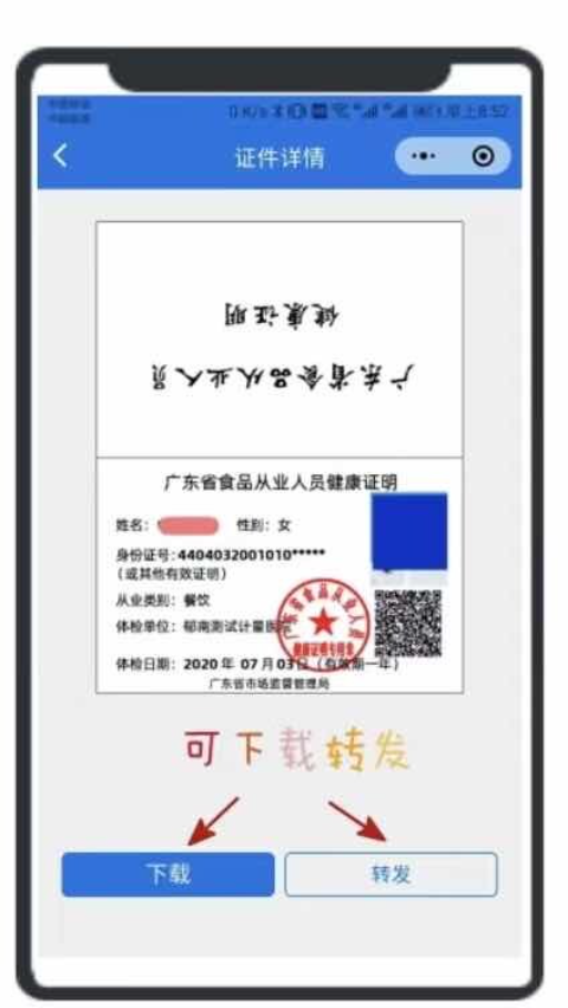 7、若选择转发电子证的话,请选择想转发的对象,点击转发链接,可下载电子证图片保存至图库,下载后的电子证可进行打印裁剪。