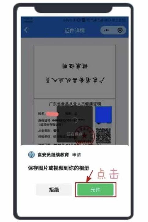 6、若选择下载电子证的话,请允许保存图片至相册,下载后的电子证如图7所示,下载后的电子证可进行打印裁剪。
