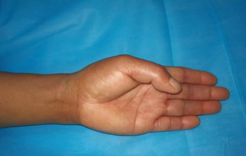 在常人看来,翘起拇指点赞,是一件很简单的事情,但有那么一小部分人群做不到。近日,我院骨伤科收治了一位这样的患者。