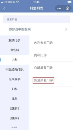 2.预约挂号,选择内科门诊列表中的新冠康复门诊