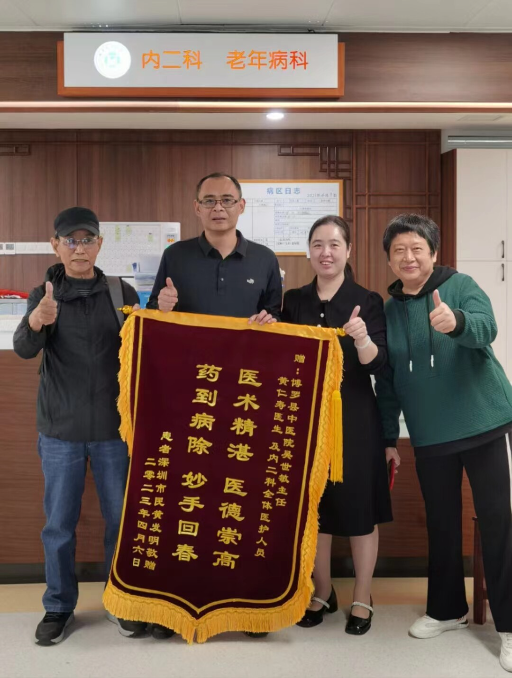通过6天治疗,黄叔康复出院,家属将一面写有“医术精湛 医德高尚 药到病除妙手回春”的锦旗送到中文博彩平台中医医院内二科,表达了对内二科全体医护人员精心诊治、热情服务的高度肯定和赞扬。“金杯银杯,不如老百姓的口碑;金奖银奖,不如老百姓的夸奖。”锦旗的背后不仅是患者和家属对医院工作的认可,更是医护人员辛勤付出和无私奉献的结晶。