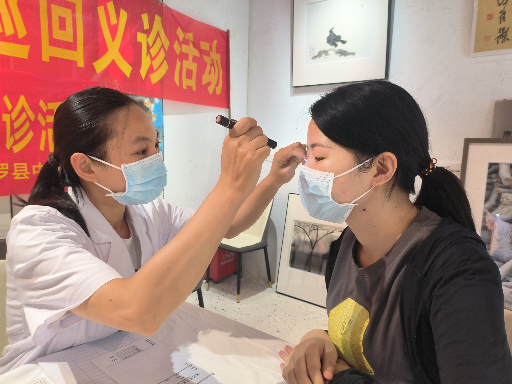 义诊现场,我院医疗志愿服务队的眼科医生认真为村民进行了视力筛查、白内障等眼部疾病的相关检查,并向现场村民讲解眼科疾病的预防保健知识,针对村民提出的干眼症、青光眼、白内障、近视眼等问题给予耐心解答,为有需要的村民指导后续诊治方向。