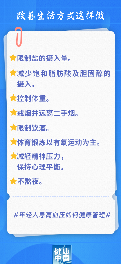 我们在此郑重呼吁,年轻人要关心自己的身体健康,重视血压监测;养成良好的生活方式,管理好血压;遵医嘱服用药物,把血压控制在目标值以内,降低心脑血管疾病患病率,尽早迎来我国心脑血管疾病的防治拐点。