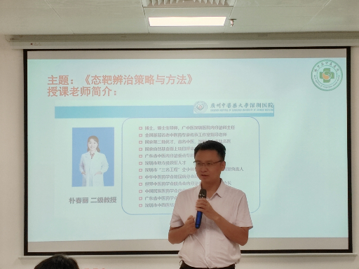 课堂上,朴春丽教授以《态靶辨治策略与方法》为题,通过真实、生动的病例,深入浅出地讲解如何在临床上运用"态靶辨治”。"态靶辨治”是以提高现代中医临床疗效为目的、以中医“调态”为基础、以现代医学研究成果为借鉴的创新辨治体系。中医能够通过审查疾病的外在之“象”来判断疾病产生的内外环境状态,并用宏观“调态”的方法来恢复机体的自稳态,进而达到治疗疾病的目的。现代医学更聚焦于疾病发生的微观病因和靶点,并用精准“打靶”的方式来解决特定症状体征及理化指标的异常'态靶辨治”有机融合中医“调态”和西医“打靶”,使中西医的特色优势得以互补。这一体系基于病证结合、宏观与微观相结合、明确方药量效关系等思路,覆盖中医从诊断到治疗全过程,且已在糖尿病、高血压等常见病、多发病领域获得了可靠的实践验证。