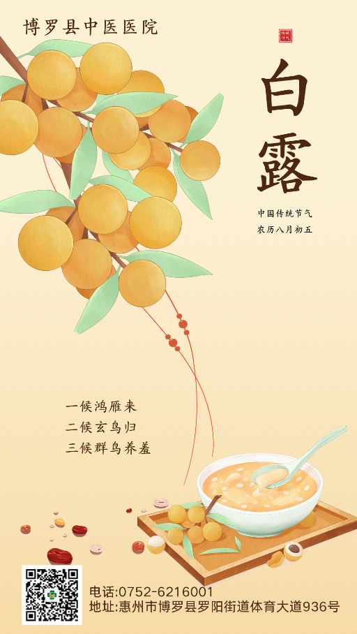 《月令七十二候集解》中说:“八月节……阴气渐重,露凝而白也。”《黄帝内经》强调“秋冬养阴”,肺喜润不喜燥,秋季应当顺应天地自然之规律,白露秋燥伤人,容易耗人津液。根据“燥则润之”的原则,饮食上应多食滋阴润燥之品,养护阴津,以养心肝脾胃。也可多食白色的食物,生津润肺、补益肺气。