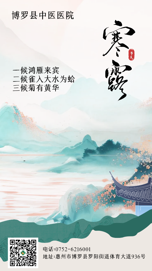 《月令七十二候集解》说:“九月节,露气寒冷,将凝结也。”寒露,二十四节气中的第十七个节气,是秋季的第五个节气。寒露是深秋的节令,是一个反映气候变化特征的节气。进入寒露,秋意渐浓,昼夜温差大,寒生露凝,气爽风凉,秋燥明显。