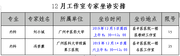 【出诊通知】 刘小斌医教研工作室及冯崇廉名医工作室12月坐诊安排