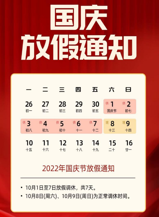 根据《国务院办公厅关于2022年部分节假日安排的通知》,结合我院实际情况,现将2022年国庆节放假及门急诊安排通知如下: