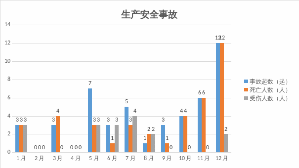 2020年1至12月份,全县发生生产安全事故47起,死亡人数39人,受伤人数17人,直接经济损失12055950元,与去年同期相比,事故起数上升2起,上升4.4%、死亡人数上升2人,上升5.4%、受伤人数下降2人,下降10.5%。未发生较大以上生产安全事故。
