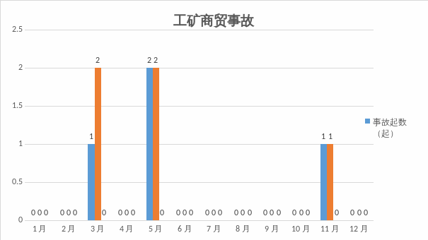 (一)工矿商贸:2020年1至12月份,全县共发生工矿商贸事故4起,死亡人数5人,受伤人数0人,直接经济损失11980000元(以2020年事故调查结案数据为准)。与去年同比,事故起数上升3起,上升300%、死亡人数上升4人,上升400%、受伤人数持平。