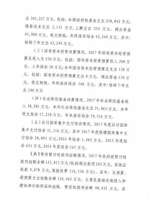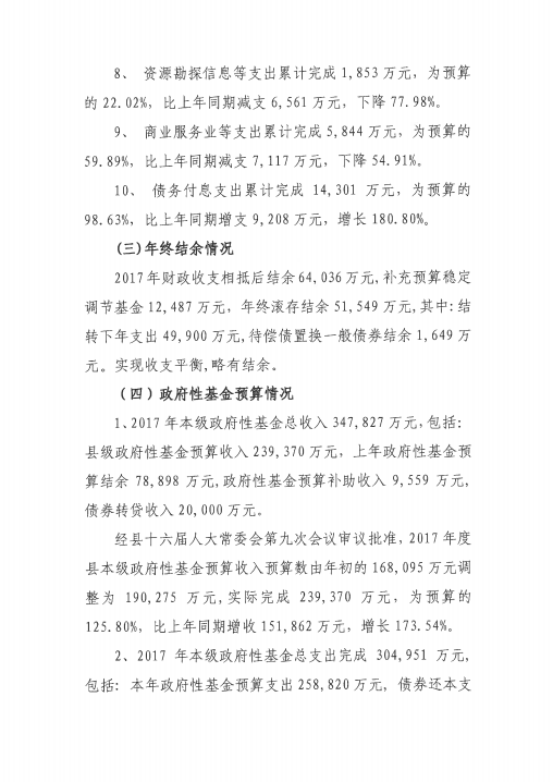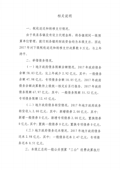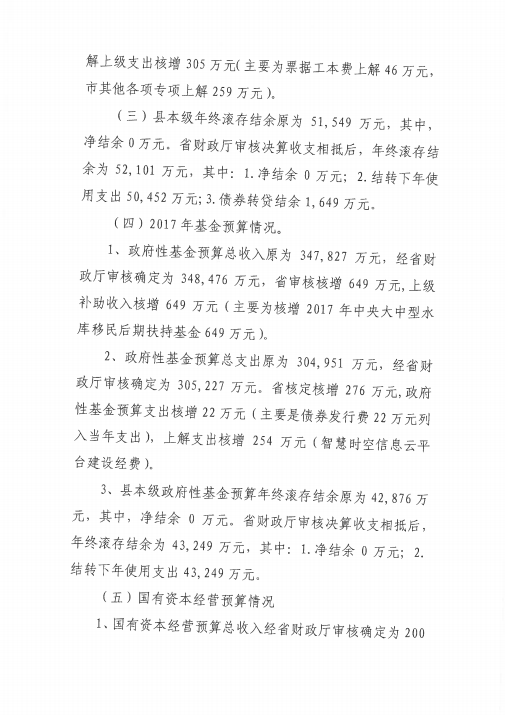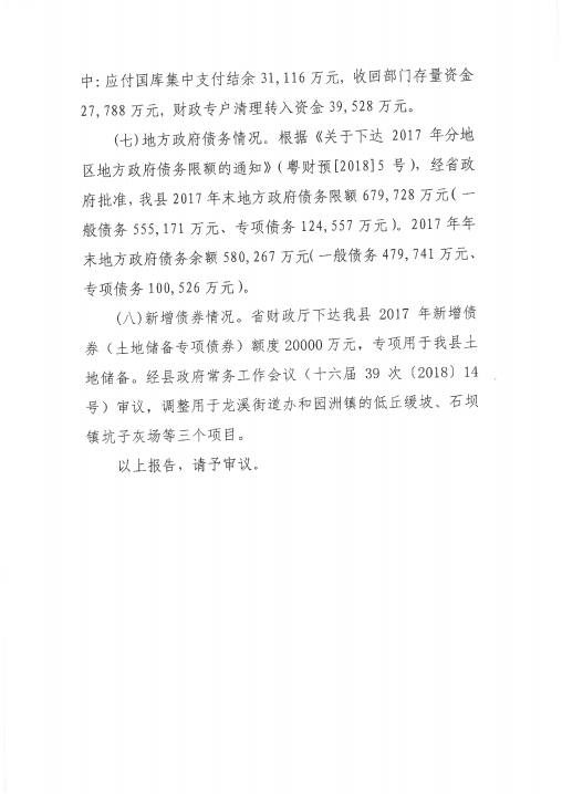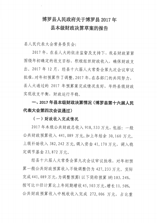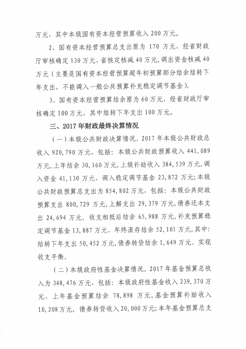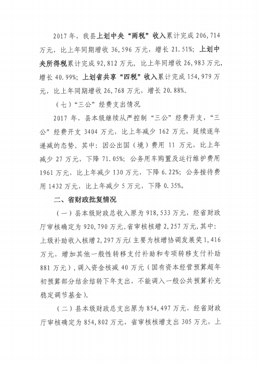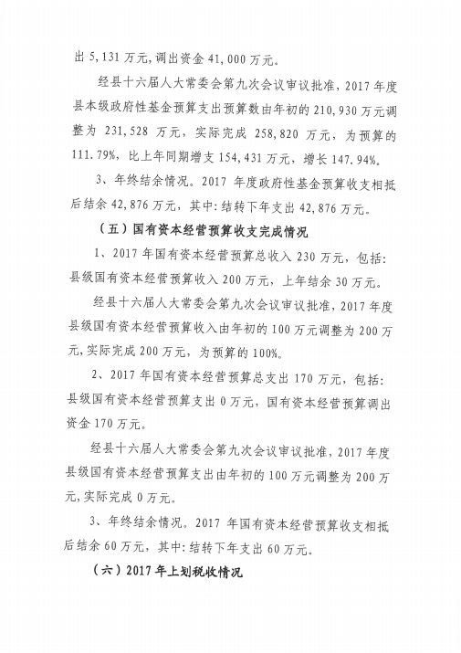 关于中文博彩平台2017年县本级财政决算草案的报告