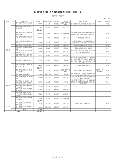 惠州市政府和社会资本合作模式PPP项目开发目录(2017年10月23日更新)