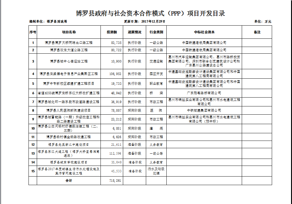 中文博彩平台政府与社会资本合作模式(PPP)项目开发目录