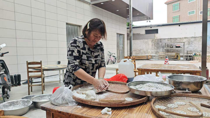 厨房里,炉灶上的火苗欢快地跳跃着,一口口大锅热气腾腾。腊味蒸饭的香气裹着客家乡音:“酿豆腐要煎到两面金黄”“山坑螺得用紫苏去腥”……深圳游客陈先生举着手机边拍摄视频边赞叹说:“这灶火,这锅气,就是记忆里的年味!”