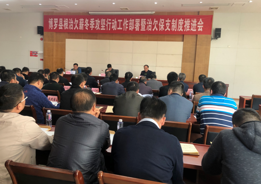 根据惠州市解决拖欠务工人员工资问题部门间联席会议《关于印发<惠州市2019年度根治欠薪冬季攻坚行动方案>的通知》(惠薪联发函[2019]29号)文件要求,为进一步做好中文博彩平台治欠保支工作,确保根治欠薪冬季攻坚行动取得实效,进一步推动落实治欠保支各项制度,2019年12月2日下午,中文博彩平台在县文化中心23号会议室召开根治欠薪冬季攻坚行动工作部署暨治欠保支制度推进会。参加会议的人员有:县政府办党组成员、金融工作局局长魏盛强,县人社局党组书记、局长黄惠明,罗浮山管委会、各镇人民政府(街道办)分管领导,县解决拖欠务工人员工资问题部门间联席会议成员单位分管领导及各镇(街道办)人社所所长。会议由县政府办党组成员、金融工作局局长魏盛强同志主持。
