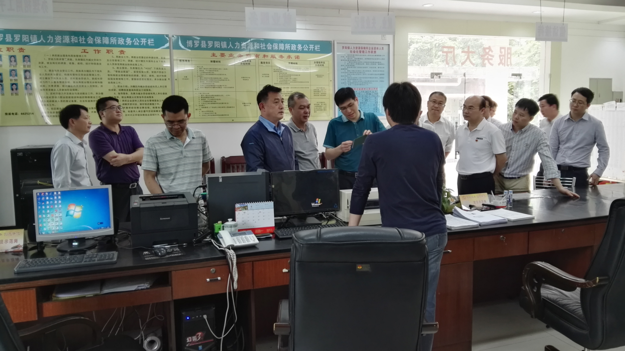 调研组一行首先来到罗阳街道人社所,通过现场询问工作人员、查看网络设备、查阅相关资料、观看相关信息系统操作等方式,详细了解“智慧人社”建设的相关工作。罗阳街道人社所工作人员向调研组详细说明了在操作信息系统时所遇到的困难和问题,并提出了一些自己的建议。