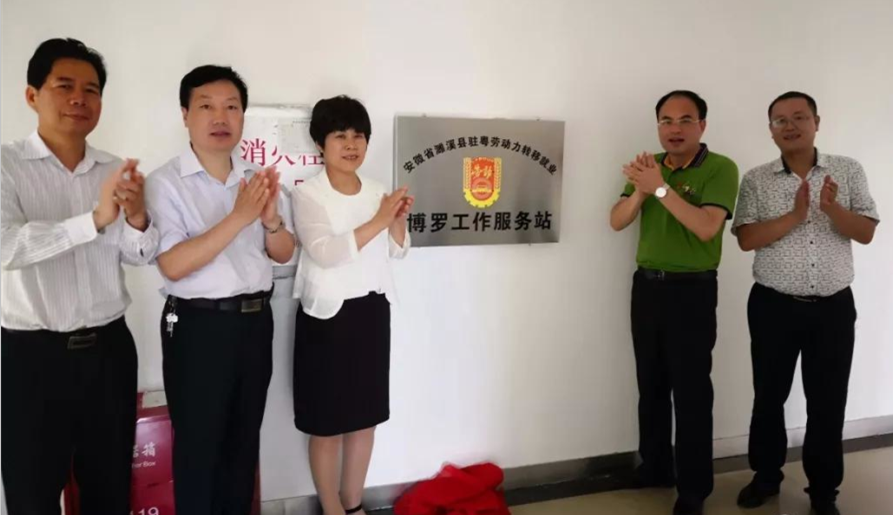 会后,张香娥副主任、黄惠明局长等领导一同为安徽省濉溪县驻粤劳动力转移就业中文博彩平台工作服务站揭牌。