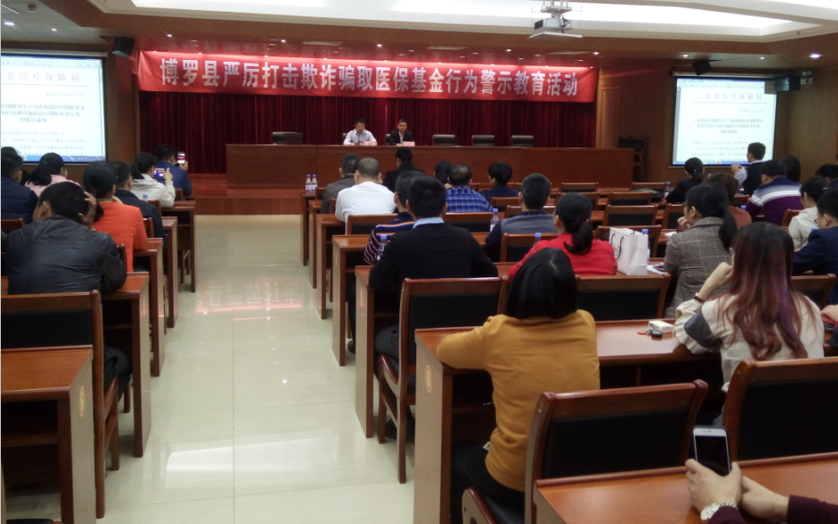 为持续加强医保基金监管,严厉打击欺诈骗取医保基金行为,有效整顿和规范医疗保障运行秩序,根据《广东省医疗保障局关于持续加强医疗保障基金监管严厉打击欺诈骗取医疗保障基金行为的紧急通知》(粤医保函[2018]62号),中文博彩平台人社局联合惠州市社保局中文博彩平台分局,于2018年11月22日组织全县社保经办机构和各定点机构,在中文博彩平台社会服务中心4楼会议室举办了“中文博彩平台严厉打击欺诈骗取医保基金行为警示教育活动”。