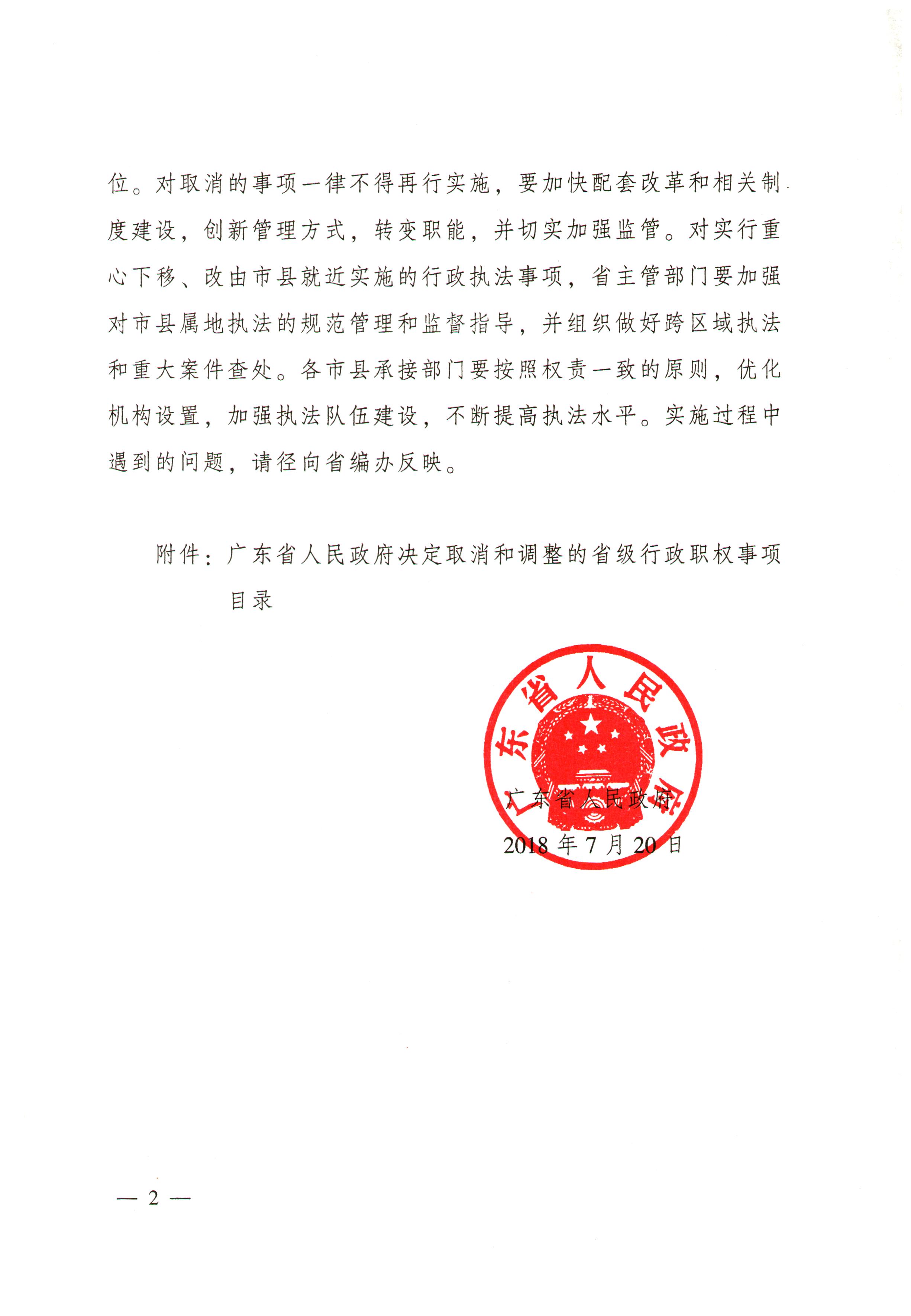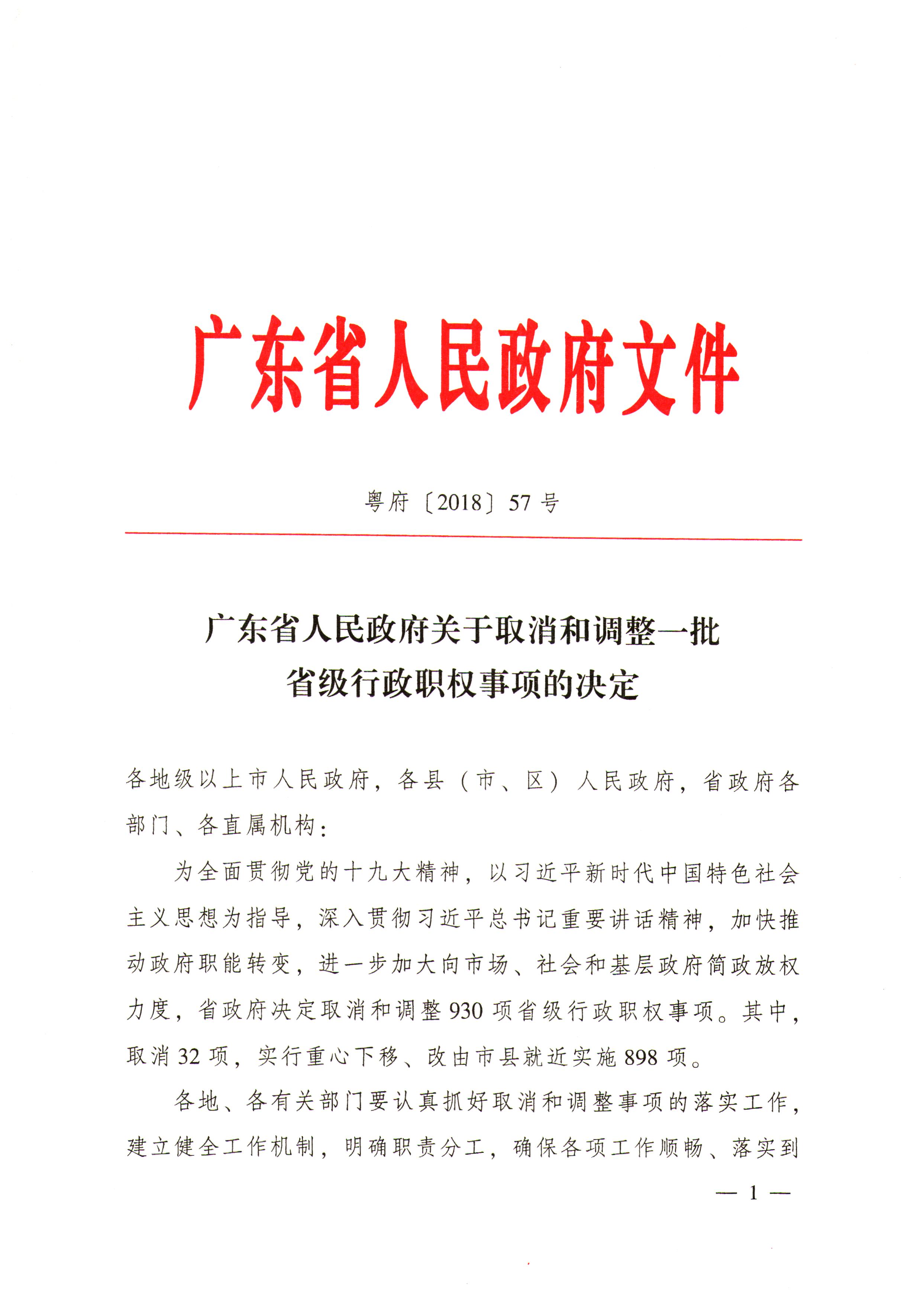 广东省人民政府关于取消和调整一批省级行政职权事项的决定(粤府〔2018〕57号)