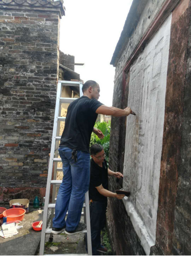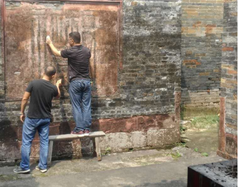 近日,我县福田镇文化站发现依岗村有一副古壁画,因壁画风化严重,字体模糊不清,博物馆同志前往协助调查、拓片研究。