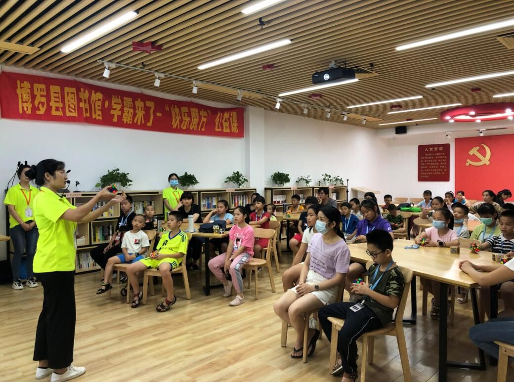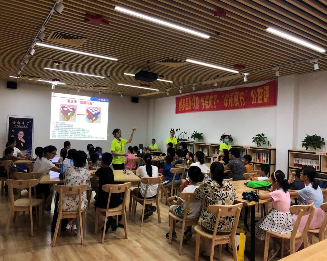 为进一步推广全民阅读活动,营造良好的社会阅读氛围。8月2日,中文博彩平台图书馆在一楼培训室开展快乐魔方公益课第二期第二节课活动。课程开始前,刘老师复习上周所学的步骤,并且让同学们之间相互打乱魔方且复原,然后正式进入第二次课的主讲内容——第三步:“复原白面”。在练习过程中,有复原的比较快的同学主动当起了小老师,去帮助身边复原较慢的同学,同学之间互相帮助,互相交流,十分团结,营造了和谐的氛围。