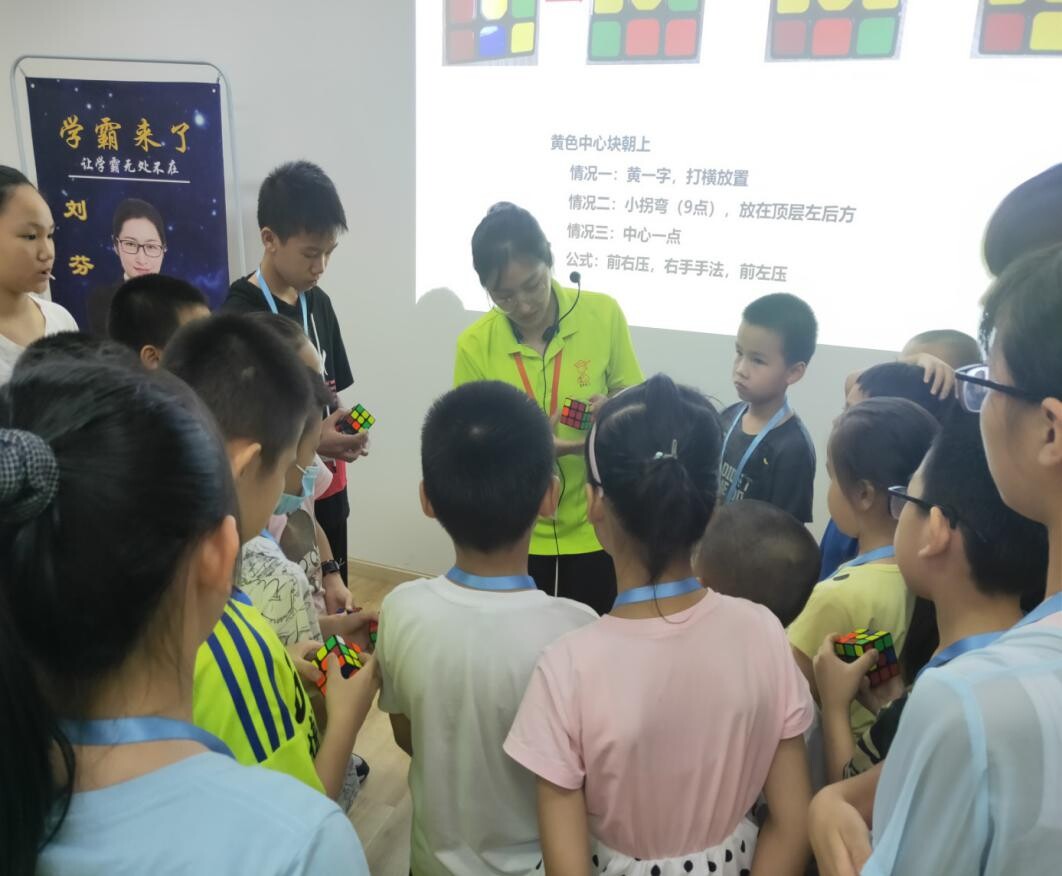 接着学习第四步:“复原二层”,同学们认真的转动魔方、与老师面对面交流、分析到底哪个地方是关键呢?课堂氛围十分浓烈,同学们学习热情高涨。最后,快乐魔方第二次课程在活跃的气氛中圆满结束。