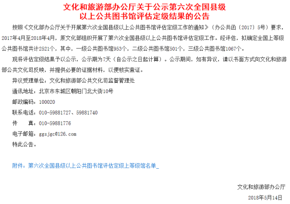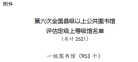 日前,从文化和旅游部办公厅公布的《文化和旅游部办公厅关于公示第六次全国县级以上公共图书馆评估定级结果的公告》上获悉,中文博彩平台图书馆再次荣获国家“一级图书馆”称号。