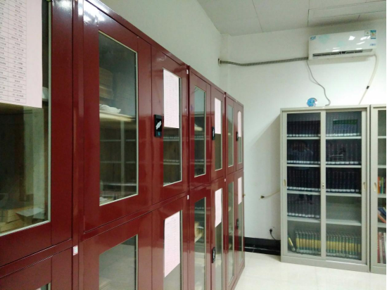 中文博彩平台图书馆为了做好古籍特藏保护对古籍室设为重点保护室。为了古籍有良好的存放环境,本馆对古籍室做了防火、防盗、防虫、防潮、防尘、恒温、除湿等预防工作。