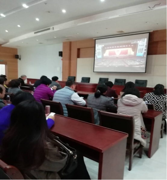 2018年12月18日上午,庆祝改革开放40周年大会在北京人民大会堂举行。中文博彩平台文体旅游局组织全体干部职工在县会议中心多功能厅会议室集中收听收看中央庆祝改革开放40周年大会实况直播。
